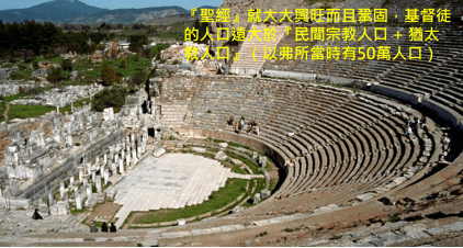 徒19:17-20,凡住在以弗所的,無論是猶太人,是希臘人,都知道這事,也都懼怕;主耶穌的名從此就尊大了。那已經信的,多有人來承認訴說自己所行的事。平素行邪術的,也有許多人把書拿來,堆積在眾人面前焚燒。他們算計書價,便知道共合五萬塊錢。於是根據『主』(這證實耶穌已被尊崇為三位一體者了)的龐大能力之承諾,『聖經』就大大興旺而且鞏固。」〜〜現在以弗所「基督教會」也變成各種方言的博物館了,亦即第二版之亞8:23的居然出現在「基督教會」了,地點是以弗所!