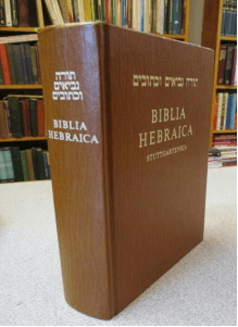 現代版希伯來文聖經的封面,其上有三個希伯來字,依序為:律法書、眾先知書、與眾聖卷。