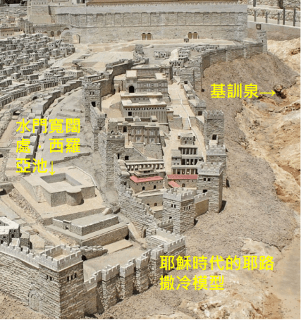 水門寬闊處,尼8:1,約9:11稱作西羅亞水池。