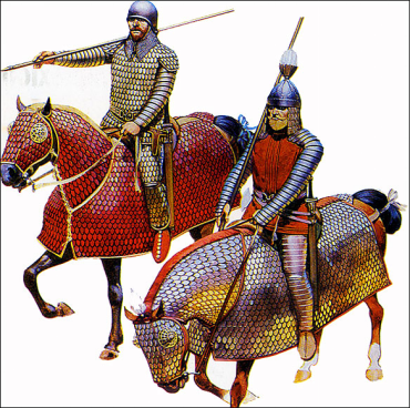 帕提亞帝國與亞美尼亞帝國的騎兵。請注意:馬穿著皮革,所以在冬天依然有攻擊力。