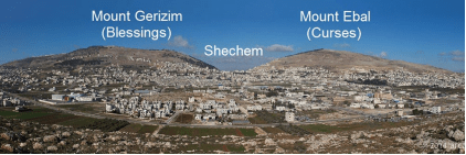 摩西生前的最後事工記載在申命記第27章,申27:2摩西和以色列的眾長老(約書亞是長老之一)命令要在成功地登陸到約旦河彼岸的那一天(那時摩西已死),抹上石灰於聖經基石上面(請前瞻5.5,約書亞祭壇)。申27:4他們又下令要在以巴路山上抹上石灰於聖經基石上面。他們再三下令有六個支派要在以巴路山上宣讀咒詛,有六個支派要在基利心山上宣讀祝福。這些命令引起我們好奇者是:1. 在以巴路山上和基利心山上都必須存在有一處大大場地足夠容納數萬人聚會,這麼大大的場地似乎不像約書亞在征服迦南的戰爭當中,撥空去拓荒新蓋出來的,乃是摩西生前就存在了。 2. 石灰和征服迦南的戰爭的確有密切的連結(約書亞記8:30-35),那麼這連結到底是什麼東西呢?