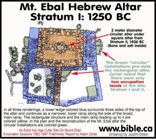 澤塔爾研究圓形祭壇裡面之灰燼的骨骸,發現90%以上是以色列人認定是禮儀上潔淨的動物之骨骸,證實有大部分年代是以色列人使用著「約書亞祭壇」。骨骸當中也有少許的Fallow Deer(申14:5,王上4:23)動物骨骸,牠是屬於不潔淨的,和不能獻祭的,以色列人不食用牠也不圈養牠。這證實圓形祭壇是效忠埃及的示劍王所建築的,他曾經用這種動物獻祭。過了短暫幾年,亞摩利人在原地建築長方祭祭壇,埋沒掉圓形祭壇,從此灰燼就不再增加了。再過短暫幾年,約書亞來到這裡,拆掉長方形祭壇,開始又在圓形祭壇的裡面添加灰燼。