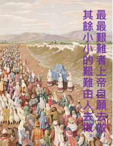 上帝在中心主旨自我介紹說,祂能夠帶上來百戰百勝,祂說到做到!在艱難之征服迦南的過程當中,最艱難者就是渡過約旦河,上帝竟選擇約旦河有大洪水的那一天,潰敗了約旦河的大洪水,讓以色列人渡過去。最最艱難者上帝自願去做,其餘小小的艱難由人去做。