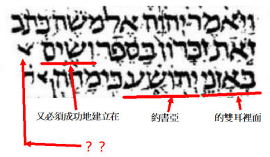 列寧格勒抄本的「必須成功地建立在約書亞的雙耳裡面」