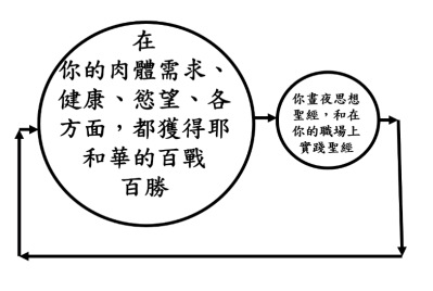 | 丁-丁’ | 舉手就得勝,垂手就敗輸。 | 百戰百勝的聖經必須成功地建立、堅毅地矗立在約書亞的雙耳裡面! |