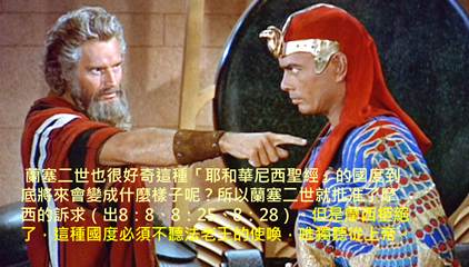 蘭塞二世也很好奇這種國度到底將來會變成什麼樣子呢?所以蘭塞二世就批准了摩西的訴求,他提供埃及帝國內的某處疆域給摩西去創建這種國度(出8:8、8:25、8:28)。但是摩西拒絕了,乃是這種國度必須不聽法老王的使喚,唯獨聽從上帝。等到出埃及後,摩西第一項的土木建築物就是「耶和華尼西聖經」(出17:15)。