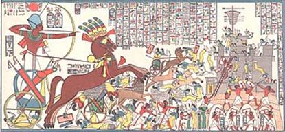 蘭塞二世(埃及法老王,Ramessese II,生於主前1304年,在位於1279 -1213年)是以色列人出埃及和入迦南時候的法老王。此圖為Kadesh戰役,謝謝禮讓版權:埃及、開羅博物館。