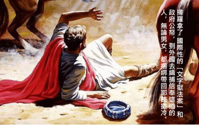 徒第9、22、26章一連三次紀錄同一件事情:掃羅(他信主後改名叫保羅)仍然向主的門徒口吐威嚇凶煞的話,去見大祭司,求文書(徒第26章作「權柄和命令」,這個文書 == 國際性的「文字獄法案」)給大馬士革的各會堂,若是找着信奉這道的人,無論男女,都准他捆綁帶到耶路撒冷。徒第24章又紀錄到這個國際性的「文字獄法案」。猶大國的執政黨控告保羅犯了「文字獄法案」,專程上到該撒利亞去控告。此控告卻未產生定讞,保羅就被囚在該撒利亞兩年以上。最後上訴到羅馬皇帝面前,保羅被移監到羅馬城京城,但是原告(猶大國的執政黨)卻缺席法庭,保羅獲釋放自由。
