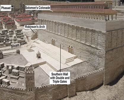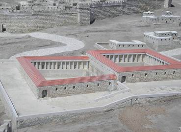 耶穌時代的聖殿「精準尺寸的模型」。近景轉角處的「內面」就是所羅門廊。