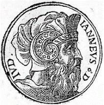 上是許幹,下是詹倪士,他們是父子,面貌應該極相似,但頭飾不一樣,許幹的頭飾是頭巾,官式名稱叫大祭司,詹倪士的是王冠,官式名稱叫國王。耶穌證實說,太18:9、可9:47、亞11:17,詹倪士的右眼被剜掉了。