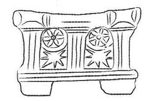 請看附圖,有兩組「(一個輪子 + 一個炸裂)」的組合圖,每一個輪子就是桌面上的那個大輪子,是「耶和華的神蹟集團蒞臨門徒」的意思。「炸裂」就是炸彈轟然炸裂,等於「耶和華爆炸掉韃虜」的意思。附圖有三隻直柱和兩個拱形棟樑,表示從「聖殿地下建築體」往外看到東邊的橄欖山。這證實:那時姍卓的政府辦公廳、文士大學的教室、行政室、與宿舍、等等,通通擠在「聖殿地下建築體」的裡面。所以兩組「一個輪子 + 一個炸裂」組合圖分別代表北山和南山。亞14:4-5:「耶和華的神蹟集團蒞臨橄欖山!山從中間被裂開,山的一半將向北挪移,一半向南挪移。」,北山和南山都是死人山,我山的凹谷都是屍水。〜〜萬軍之耶和華爆炸掉韃虜,0.1秒就擺平了185000人! 這彫刻圖飾解說了搞笑戲裡面的「死海」全景,塞滿了所羅門廊與橄欖山之間的凹谷,它被稱為『我山的凹谷』。這彫刻圖飾闡明出主禱文裡面的【祢的國被蒞臨】,和【說有就有、命立就立,祢下令拯救我們每一個人脫離那個惡者,使我們看出來這一概是祢的作為。】。